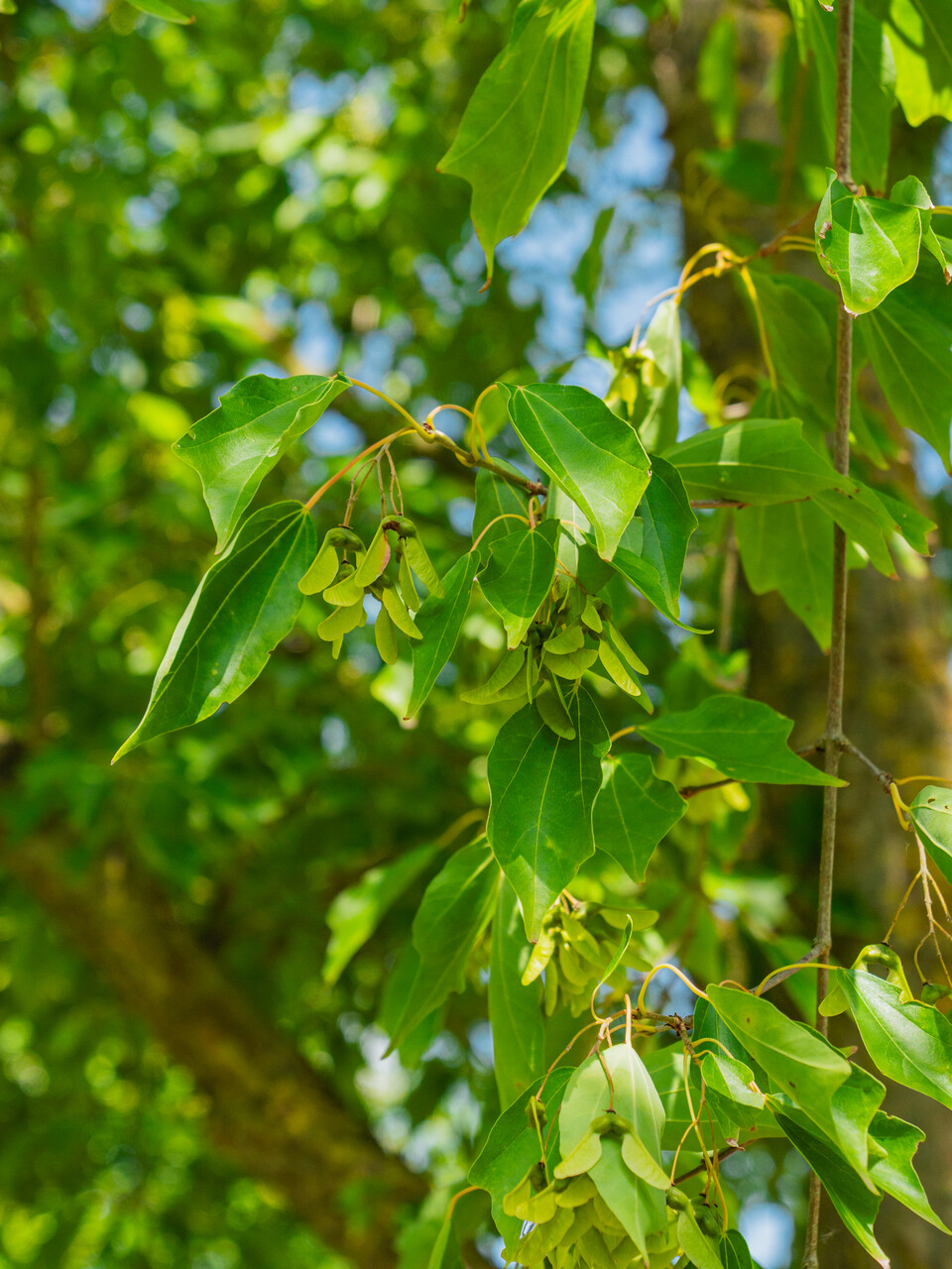 enkelte frø, vingede, altid parvis. Lysegrøn til rødlig, 2,5 cm