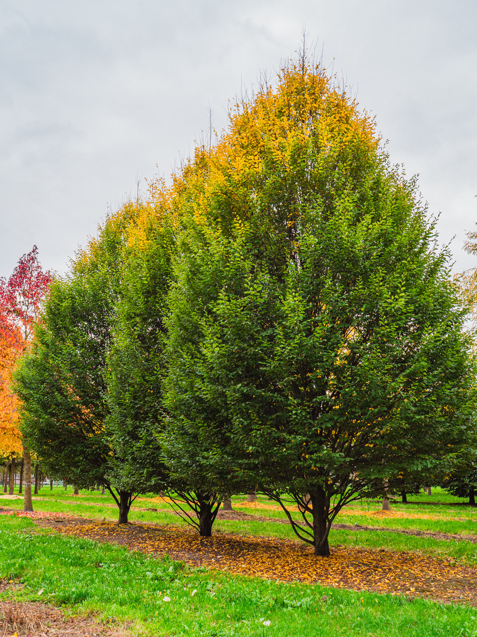 The leaves of Carpinus betulus 'Fastigiata' turn gul in autumn.