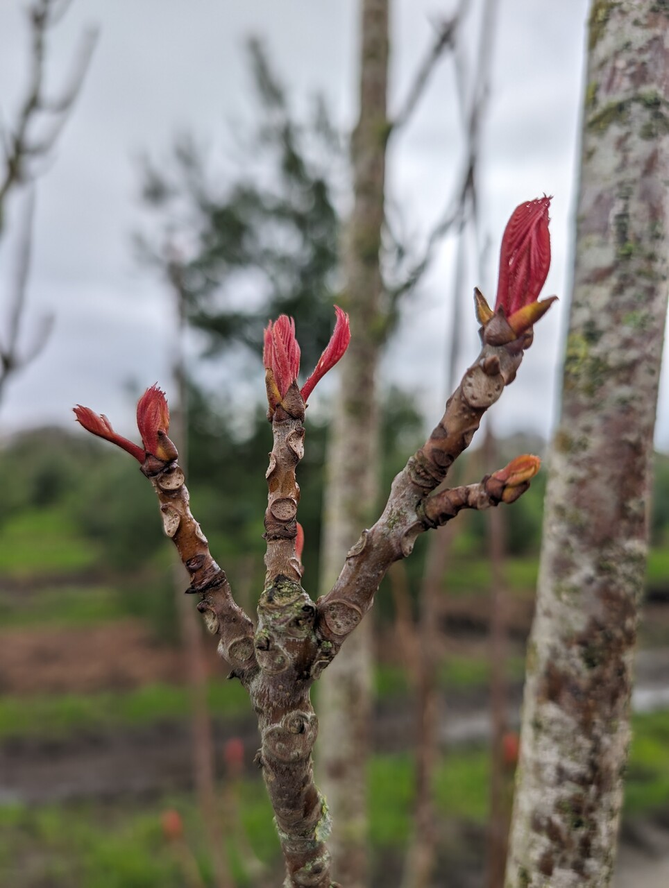 kviste kobberfarvede og behårede, bark brungrå med langsgående sprækker
