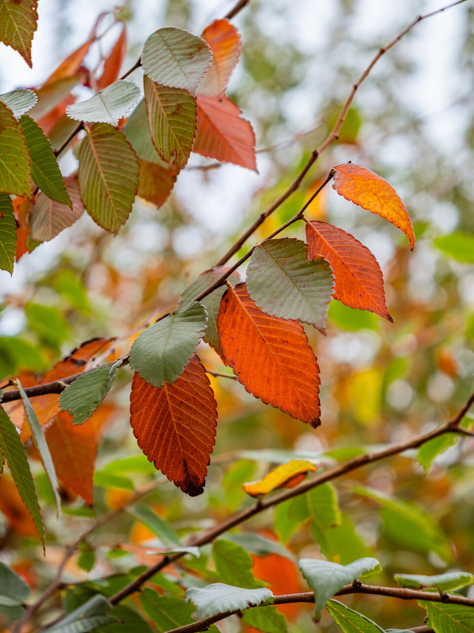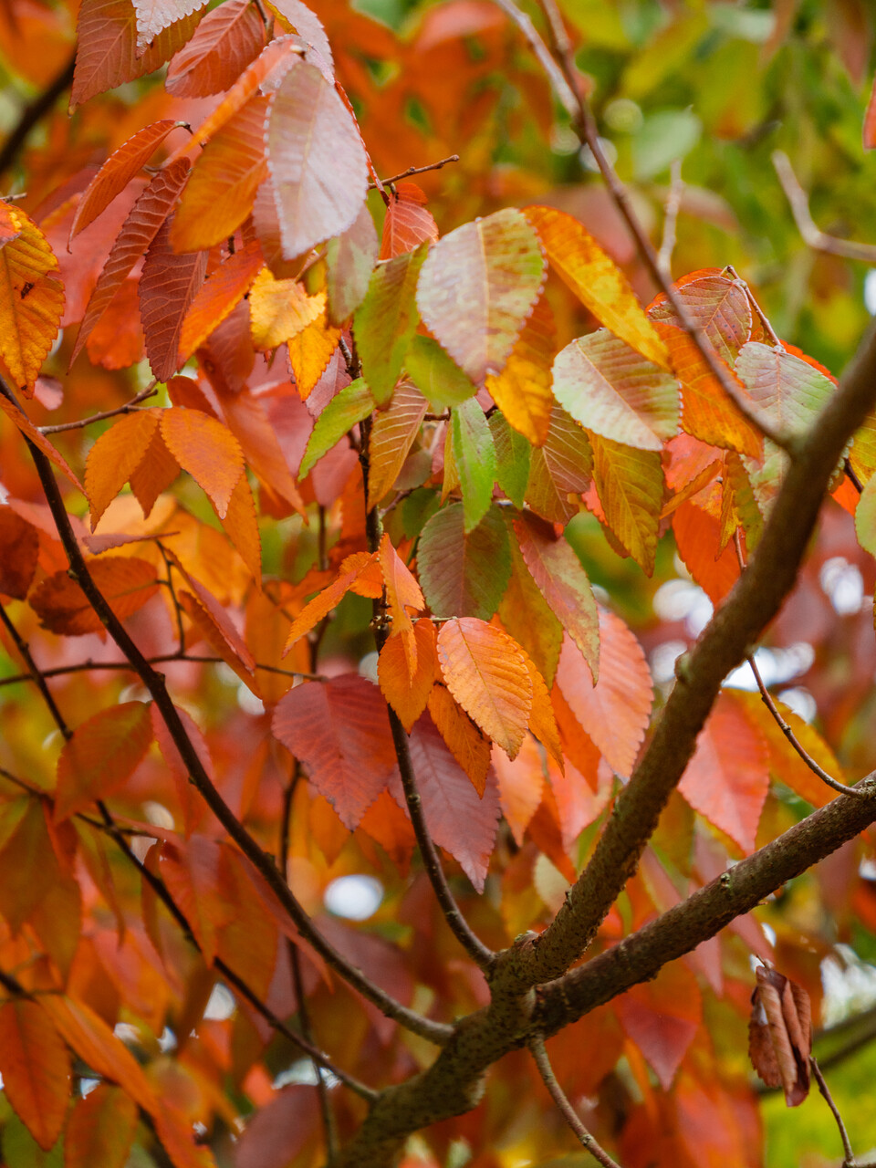 The leaves of Zelkova schneideriana turn rød in autumn.