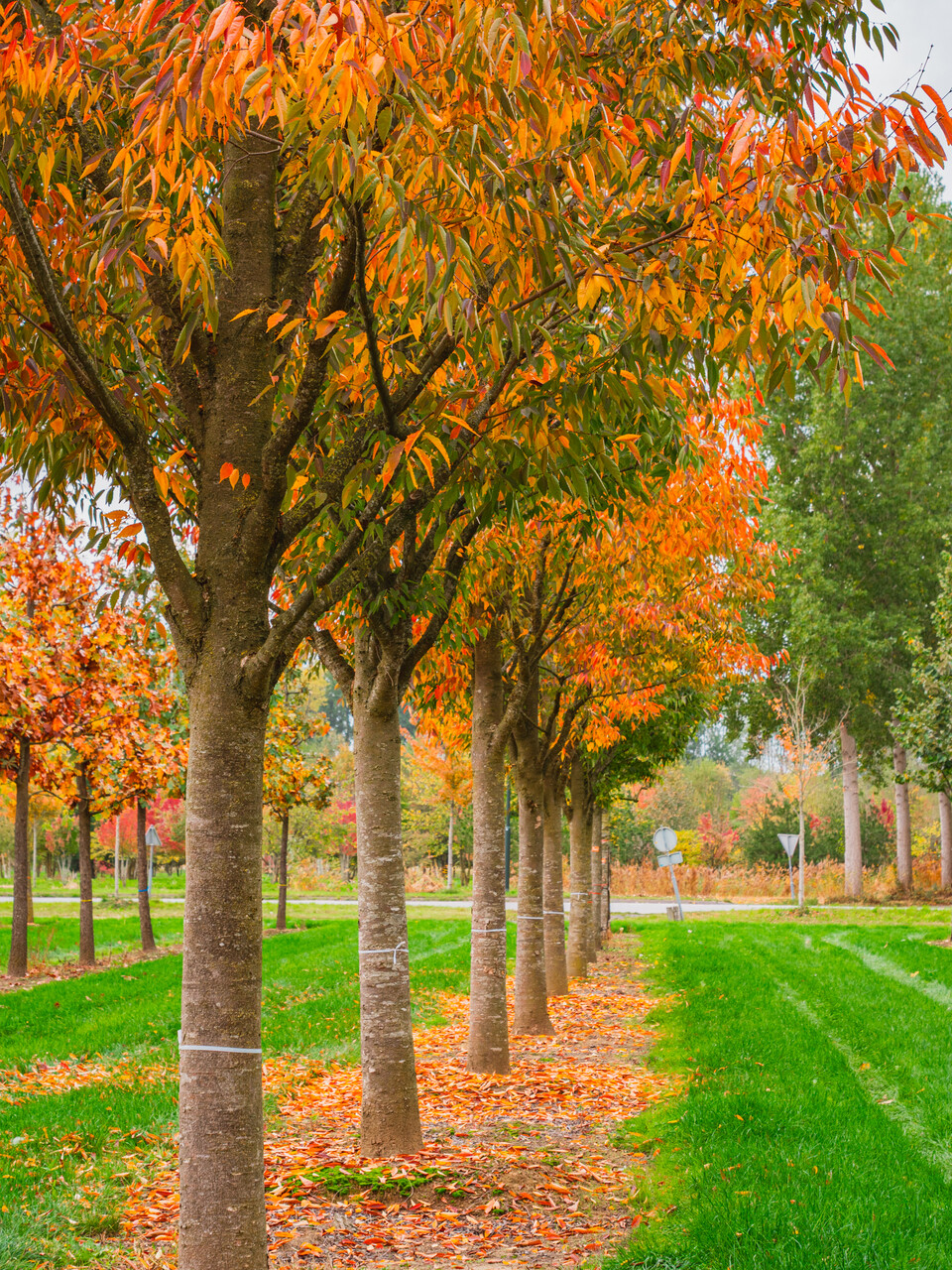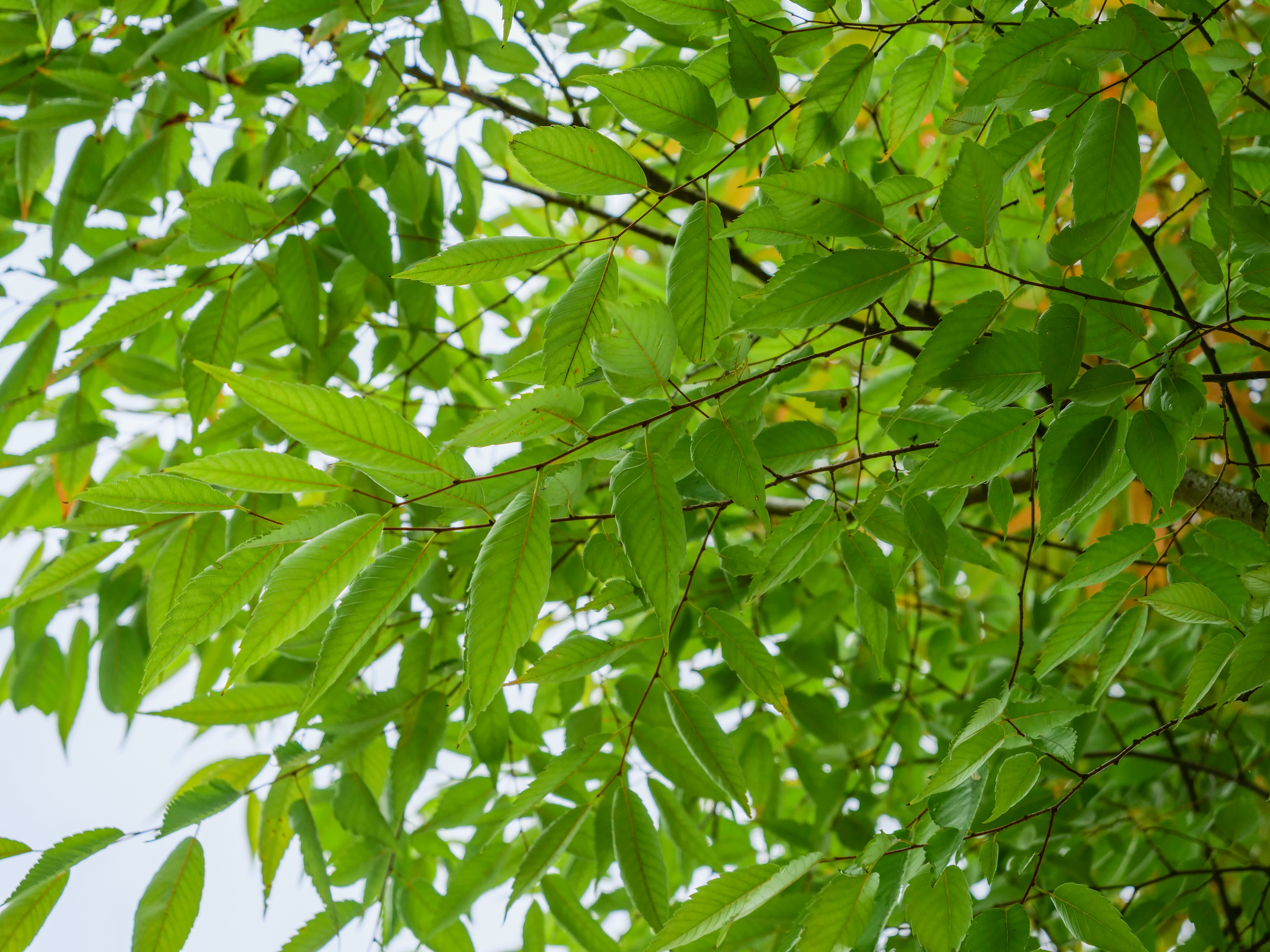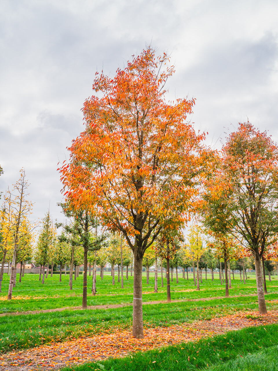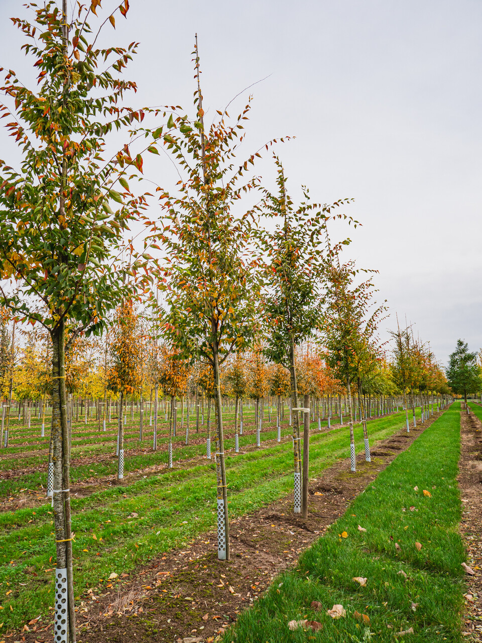The leaves of Zelkova serrata GREEN VASE ('Flekova') turn gul, orange, rød in autumn.